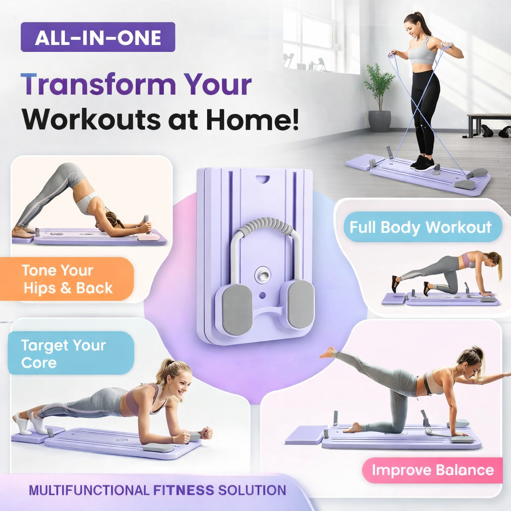 This Pilates workout board helps you perform multiple exercises that target your entire body. You can use it for: